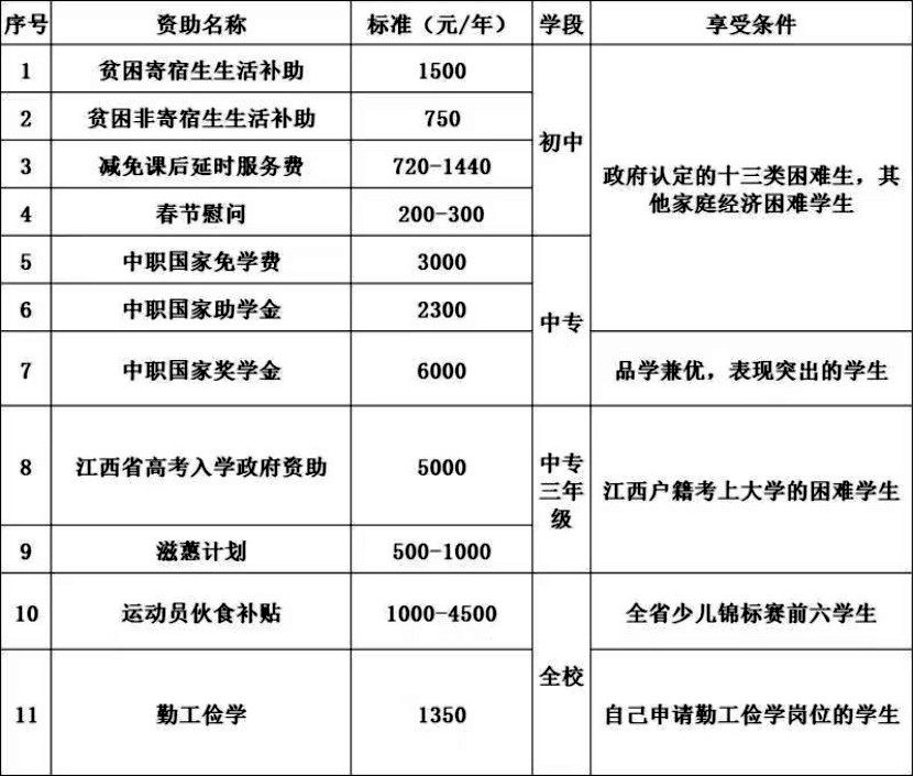 2、中专学费3000元/年,住校公寓费200元/学期。