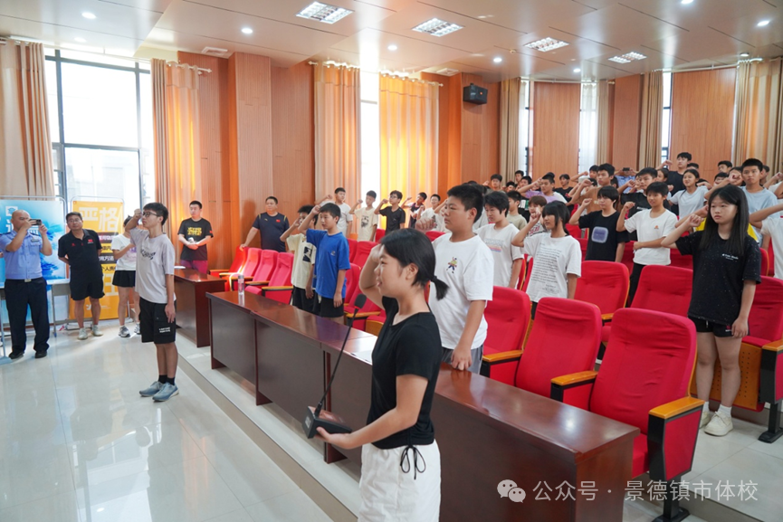 随后,全体运动员高举右拳,庄严宣誓,承诺将严格遵守体育道德,坚决杜绝毒品与兴奋剂,以干净的姿态投身训练与竞赛,誓言铿锵有力,展现出景德镇市体育健儿的坚定决心。