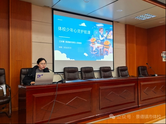 在体校的训练场上,少年们挥汗如雨,用坚韧与拼搏追逐着竞技梦想;而在光鲜的成绩背后,高强度训练的压力、胜负得失的焦虑、成长阶段的困惑,都可能成为他们心理路上的“拦路虎”。为守护体校学子的心理健康,筑牢成长根基,推动健康教育融入校园生活,1月21日上午,市体校健康副校长、景德镇市第四人民医院心理援助热线负责人江玲霞医生,在体校多媒体教室开展了一场干货满满的心理健康教育专题活动,为中一年级同学们送上了一份温暖而有力的心灵指引。