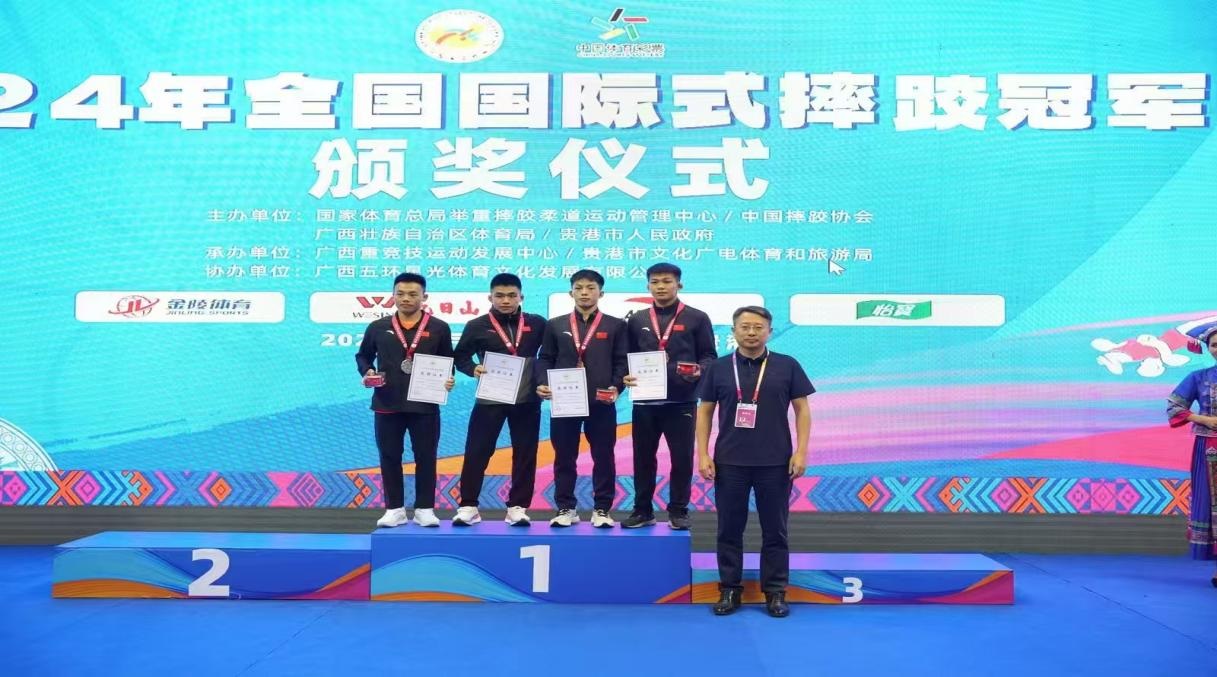图左一胡胜杰 国家级健将 2024年全国自由式摔跤冠军赛57kg第二名