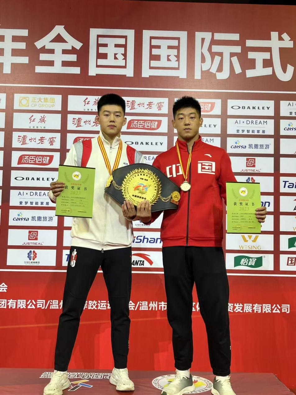 图右一罗建文 国家级健将 2023年全国古典式摔跤锦标赛97kg冠军